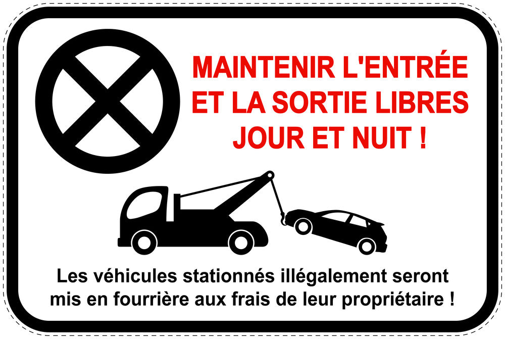Les véhicules stationnés illégalement seront mis en fourrière aux frais de leur propriétaire !" (stationnement interdit) en tant qu'autocollant